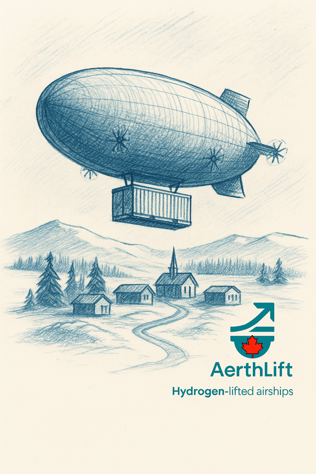 We’re developing hydrogen-lifted airships — a modern evolution of lighter-than-air transport — supported by a network of modular support hubs and guided by intelligent, automated logistics systems. Together, these technologies could help close the physical gap between remote regions and the rest of Canada — affordably, sustainably, and reliably.